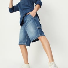 For a relaxed effortless style, pick this pair of denim shorts. It features a carpenter clothing-inspired construction with a belt loop waist, multiple pockets, and a tab accent at the side. Team up this pair of baggy shorts with a tee and sneakers.