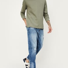 These carrot-fit jeans with a washed surface, distress, belt loop waist, and 5 pockets will jazz up your denim wardrobe. These jeans offer plenty of modern style, ready to mix and match with anything in your wardrobe to lift your look.