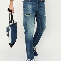 These carrot-fit jeans with a ripped surface along with distressing, belt loop waist, and 5 pockets will jazz up your denim wardrobe. These jeans offer plenty of modern style, ready to mix and match with anything in your wardrobe to lift your look.