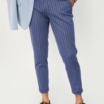 Elevate your look with this pair of trousers tailored in a carrot-fit profile. It features a flat front, striped pattern, side pockets, back buttoned welt pockets, and a full-length profile. Tuck a shirt into this pair of trousers and finish the look with formal shoes.