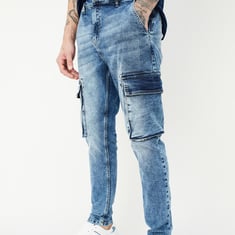Men Carrot Fit Washed Cargo Jeans
