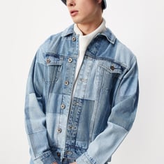 A layering essential, this denim jacket boasts a colourblock design. It is styled with a spread collar, long sleeves, buttoned cuffs and flap pockets with buttons on the chest. Pair this jacket over a tee and style it with a matching pair of jeans for an updated look.
