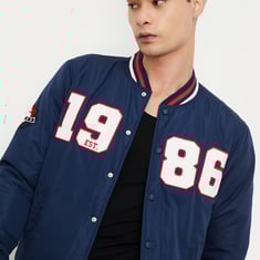 Elevate your style game with this varsity jacket. Featuring a classic baseball collar, full sleeves, and a snap button closure, it’s designed for both comfort and flair. The embroidered details on the front and back add a touch of uniqueness, making it a standout piece.