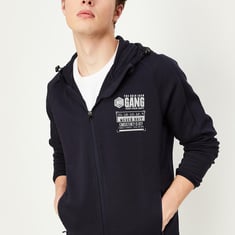 Spruce up your winter wardrobe with this sweatshirt that is rendered in a printed design. It features a hooded neck, long sleeves, zip front, side pockets and ribbed trim. Cosy up your look by layering this sweatshirt over a tee and teaming it up with jeans and sneakers.