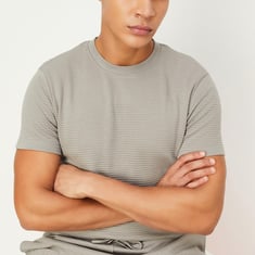An ideal pick for a casual wardrobe, this lounge T-shirt will enhance your laid-back style. The features include a crew neck and half sleeves for added comfort. The ottoman ribbed pattern adds to its appeal.