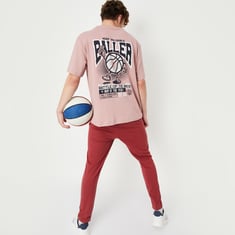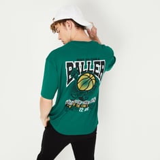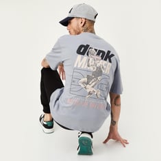 Look trendy in this t-shirt that has a graphic print at the back and a placement print on the front. It features a crew neck, short sleeves, and an oversized profile. Pair this tee with jeans and sneakers for an updated weekend look.
