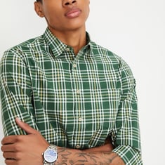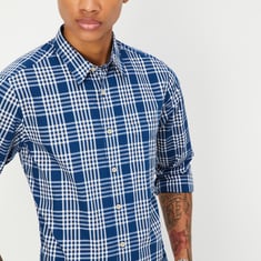 Revamp your casual ensemble with this stylish checked shirt. Boasting a spread collar, full sleeves, patch pocket, and button placket, it exudes modern flair.