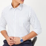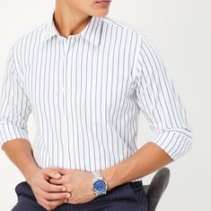 This striped shirt is designed with a spread collar, full sleeves, a patch pocket and a button placket is the perfect addition to your casual wardrobe.