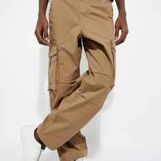 Refine your casual style effortlessly with these parachute pants. Crafted in a solid tone, they boast a drawstring waist, side flap pockets, cargo pockets, back flap pockets, and drawcords at the hem. The relaxed fit profile offers roomy comfort, making them an ideal choice for any casual outing.