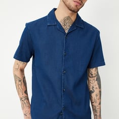 Enhance your summer wardrobe with this perfect addition – a shirt showcasing a resort collar, short sleeves, and a slim-fit profile. Pair it effortlessly with shorts and lace-up shoes for a stylish and comfortable summer ensemble.