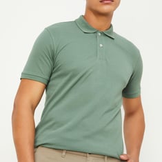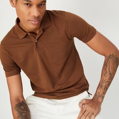 Elevate your casual style with our solid polo T-shirt. Classic polo collar, half sleeves, and a two-button placket offer refined comfort.