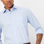 This striped shirt is designed with a spread collar, full sleeves, a patch pocket and a button placket is the perfect addition to your office wardrobe.