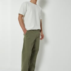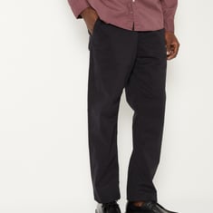 Classic and versatile, these solid regular fit trousers feature a comfortable mid-rise waist with a secure button closure. Designed with sturdy belt loops and functional pockets, they offer both practicality and a polished look, making them ideal for everyday wear or semi-formal occasions.