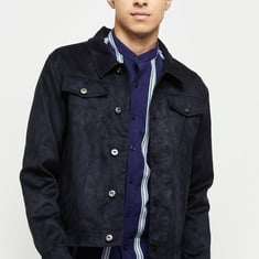 This casual jacket is designed with a solid surface, full sleeves, button closure, and flap pockets.