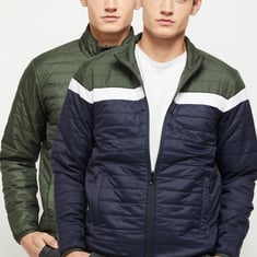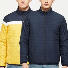 Complete your casual collection with this cool reversible jacket which has a mock collar, full zip closure, long sleeves, and two pockets. Style it with a shirt and dark jeans for a dapper yet winter-ready look.