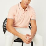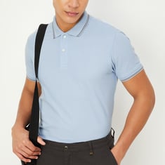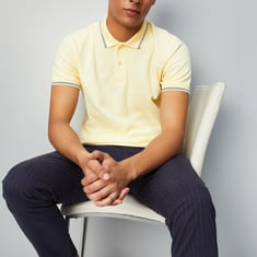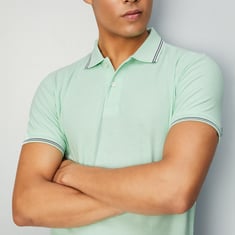Infuse your casual wardrobe with an air of refinement and comfort courtesy of this solid polo T-shirt, complete with a classic polo collar, half sleeves, a curved hemline, and a two-button placket. Its understated color palette exudes simplicity and sophistication, guaranteeing a polished and timeless look for every occasion.