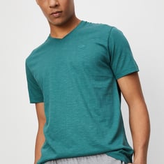 Whether you are lounging on your sofa or out for a stroll, this T-shirt provides ultimate comfort. It is designed with a V-neck, slub design, and short sleeves.