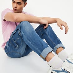 Men Stonewashed Regular Fit Cargo Jeans