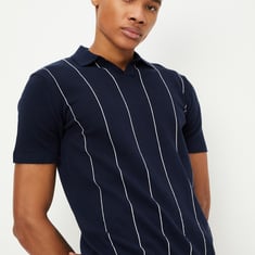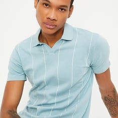 Men Striped Flat Knit Polo T-shirt