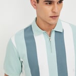 Add a touch of sporty elegance to your wardrobe with this striped polo t-shirt. Featuring a classic polo collar, zip closure, and half sleeves, this stylish piece combines comfort and a modern edge.