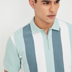 Add a touch of sporty elegance to your wardrobe with this striped polo t-shirt. Featuring a classic polo collar, zip closure, and half sleeves, this stylish piece combines comfort and a modern edge.