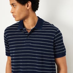 This striped polo T-shirt offers a fresh, sporty look with a stylish polo collar and half sleeves. The bold stripes add a modern touch to the classic polo design, making it perfect for both casual and smart-casual occasions.