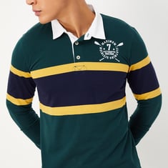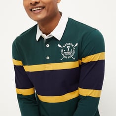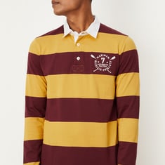 Men Striped Slim Fit Long Sleeve Polo T-shirt
