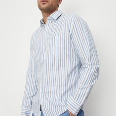 Sharpen your look with this smart casual shirt. It is tailored in a slim fit profile with a spread collar, long sleeves, buttoned cuffs, a patch pocket on the chest, and a curved hem. Pair this shirt with trousers and loafers to ace your look.