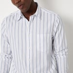 Add a refined touch to your wardrobe with this striped slim fit shirt, featuring a spread collar, button placket, and full sleeves with button cuffs. A patch pocket adds classic detail to this tailored essential.