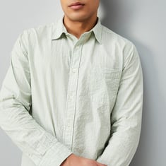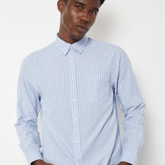 This striped slim fit shirt features a classic spread collar, button placket, and a neatly tailored silhouette for a polished look. Designed with full sleeves, button cuffs, and a practical patch pocket, it blends timeless style with everyday functionality.