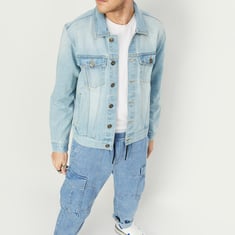 A layering essential, this denim jacket boasts a washed finish. It is styled with a spread collar, long sleeves, buttoned cuffs, flap pockets with buttons on the chest, and a panelled design. Pair this jacket over a tee and style it with matching pair of jeans for an updated look.