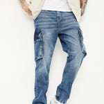 A striking addition to your everyday ensemble, this pair of jeans surely grabs eyeballs for its authentic design. The washed surface offers a glossy look and these carrot-fit jeans are designed with a button closure, insert pocket, back pocket and flap cargo pockets.