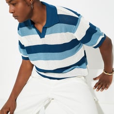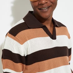 Enhance your style with this knitted polo T-shirt. This striped T-shirt has a polo neck, short sleeves and a ribbed hem, perfect for an uncompromised stylish look.
