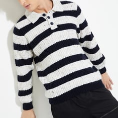 This sweater is your new go-to this season. The collared neck and full sleeves ensure a classic fit, while the knit pattern adds a touch of texture for extra flair. The striped pattern lends a classic look and pairs with everything.