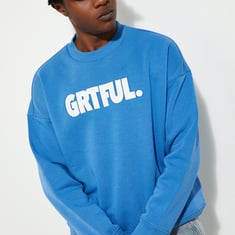Keep your street style on point with this oversized sweatshirt, featuring bold typographic prints on both the front and back. The crew neck and full sleeves offer comfort, while the ribbed cuffs and hem add a touch of structure. Perfect for casual wear, this piece effortlessly combines motivational messaging with laid-back style.
