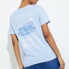 Elevate your street style with this T-shirt featuring a graphic print on the back. Complete with a classic round neck and short sleeves for a trendy yet comfortable look.
