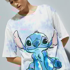 Playful and relaxed, this oversized T-shirt celebrates the charm of Lilo & Stitch with a vibrant Stitch print on the front. Finished with a round neckline and half sleeves, it blends comfort with a touch of nostalgic whimsy.
