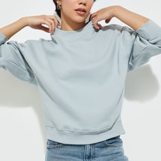 Embrace comfort and style with this solid oversized sweatshirt, featuring a classic round neck and long sleeves. The ribbed hem adds a touch of detail while ensuring a snug fit, making it perfect for layering or wearing on its own. Ideal for casual outings or cozy days at home, this sweatshirt is a versatile wardrobe staple.