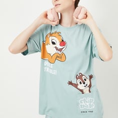 Add a playful touch to your loungewear with this T-shirt, showcasing fun Chip & Dale prints on both the front and back. Designed with a round neck and half sleeves, it combines comfort and style for a relaxed yet trendy look.