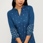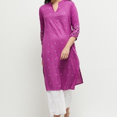 Achieve a refined look with this exquisitely designed straight kurta. Featuring a band collar and three-quarter sleeves, this garment is adorned with an intricate print that adds a touch of elegance to any ensemble. Perfect for any occasion, this piece is sure to elevate your wardrobe and leave a lasting impression.