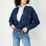 Women Denim Jacket with Teddy Collar
