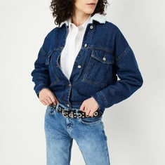 A perfect layering piece for all seasons, this denim jacket features a cosy teddy textured collar, full sleeves, and a classic front button placket. The front flap pockets add both style and practicality, making it an effortlessly cool addition to any outfit.