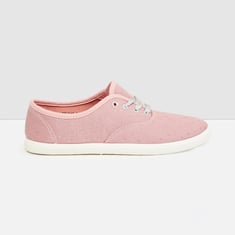 Designed with bold embellishments, this pair of canvas shoes are designed with a lace-up closure.