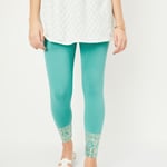 Enhance your casual wardrobe with these leggings featuring an elasticized waistband and a foil print at the ankle, perfect for coordinating with your ethnic attire.