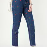 Women Mom Fit Embroidered Jeans