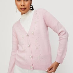 Women Pearl Embellished Cardigan