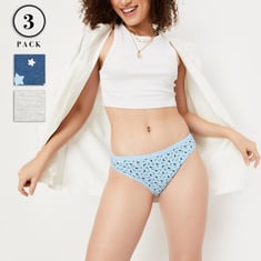 Stay comfortable throughout the day with this pack of panties. It has 3 pairs of bikini panties in assorted tones and patterns. These panties are made from an absorbent fabric with a soft inner waistband and a below-the-waistline fit.