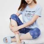 Dive into dreamland with this set. It includes a tee with a round neck, half sleeves, and a graphic print at the front. The pair of capris features all-over prints, a drawstring waist, and a cropped profile, making it a stylish and comfortable choice for bedtime.