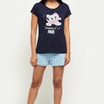 A pair of printed lounge set, which comes with a round neck and short sleeves T-shirt. This set comes with a pair of printed capris detailed with an elasticated waistband and drawstring closure.