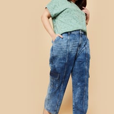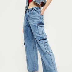 Fashioned with utilitarian cargo pockets, these jeans blend urban appeal with comfort. Their straight cut and mid-rise waist ensure a flattering look, while the light wash denim and its button and zipper closure add a touch of character. Perfect for day-to-day wear, offering both functionality and a fashion-forward edge. Model Size :